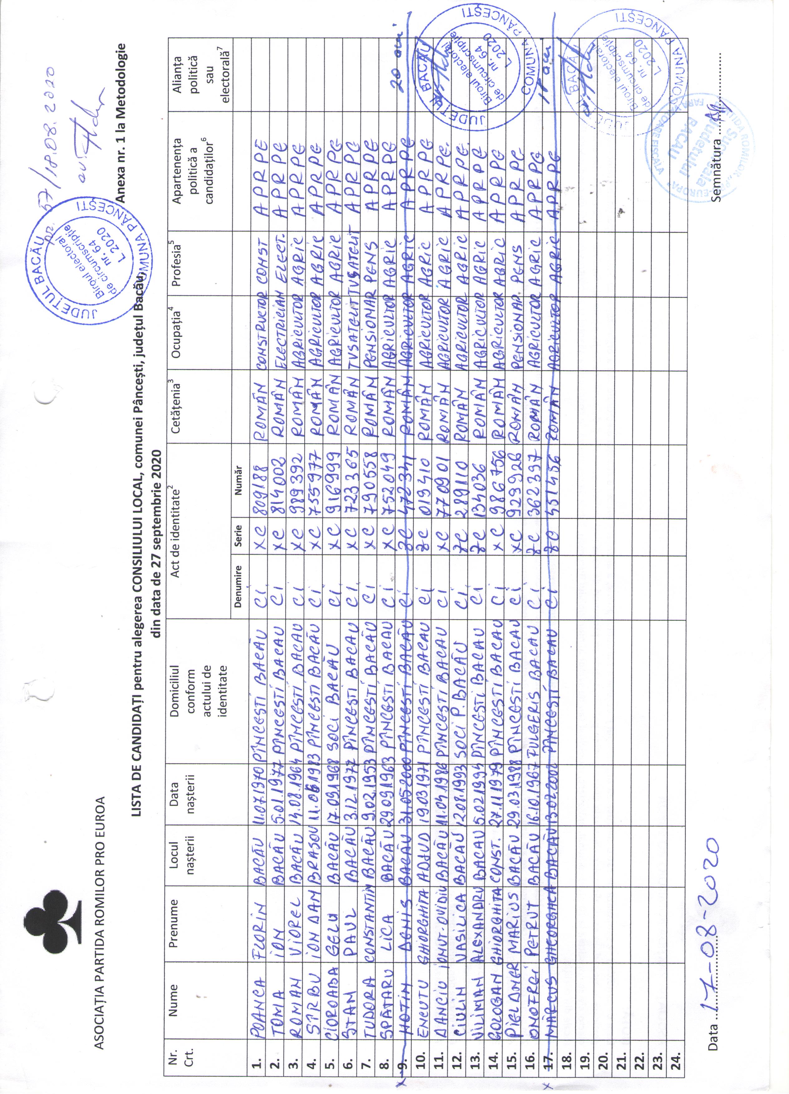 Lista de candidati Asociatia Partida Romilor PRO EUROPA