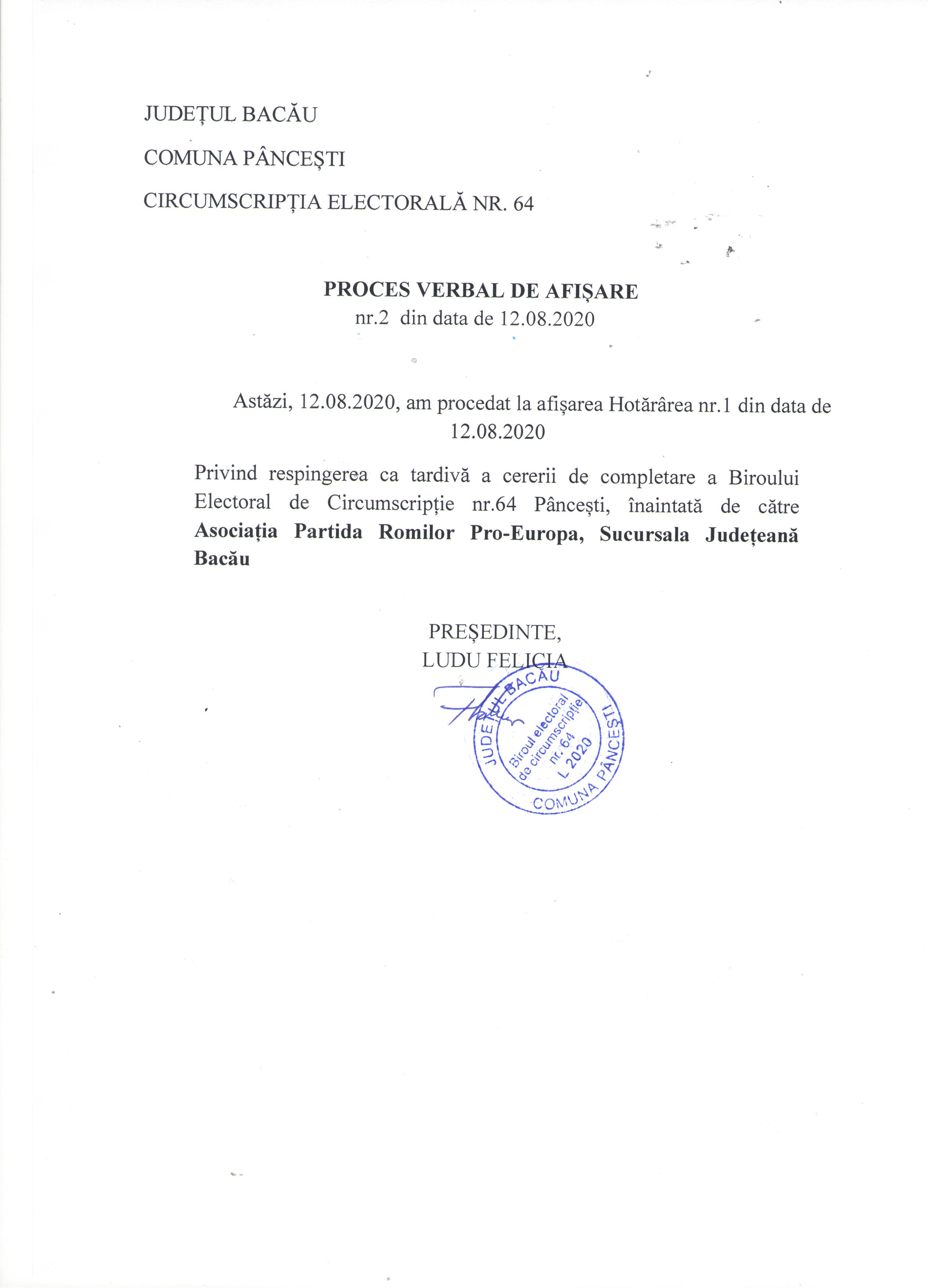 Proces verbal de afisare nr 2