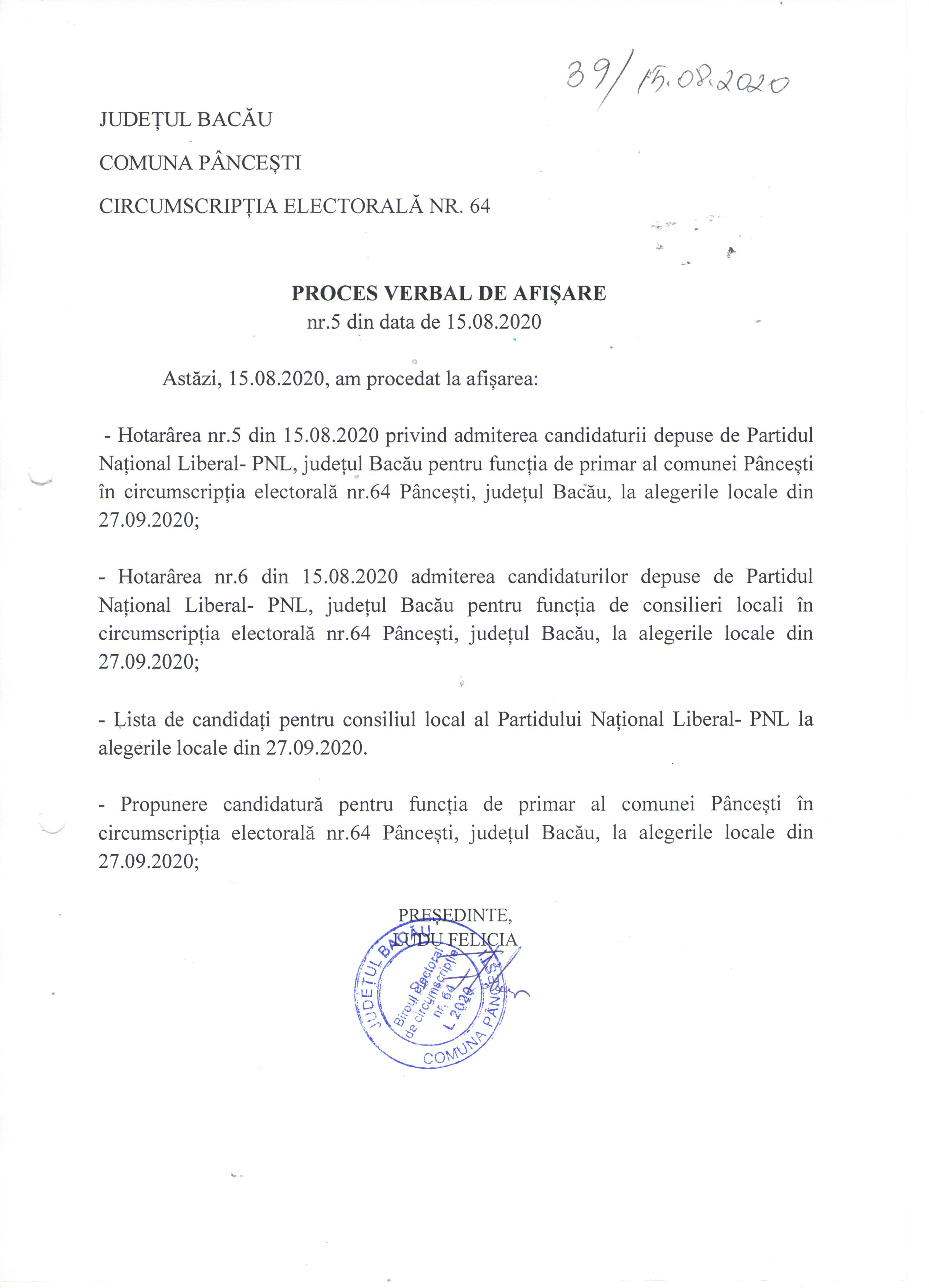 Proces verbal de afisare nr 5
