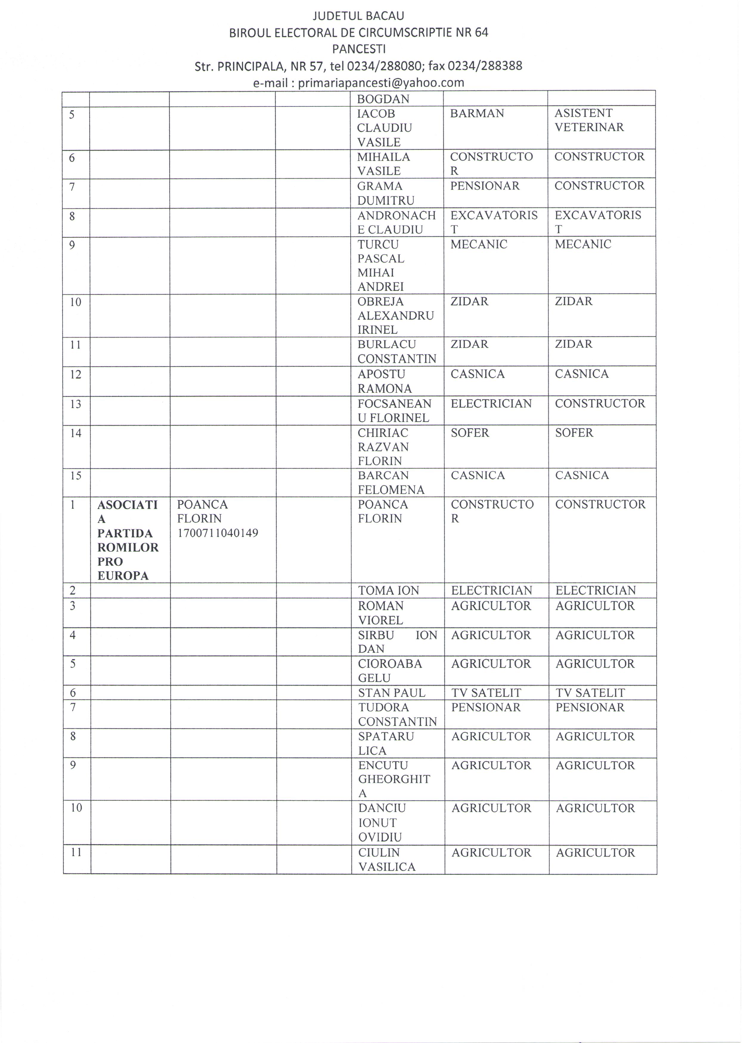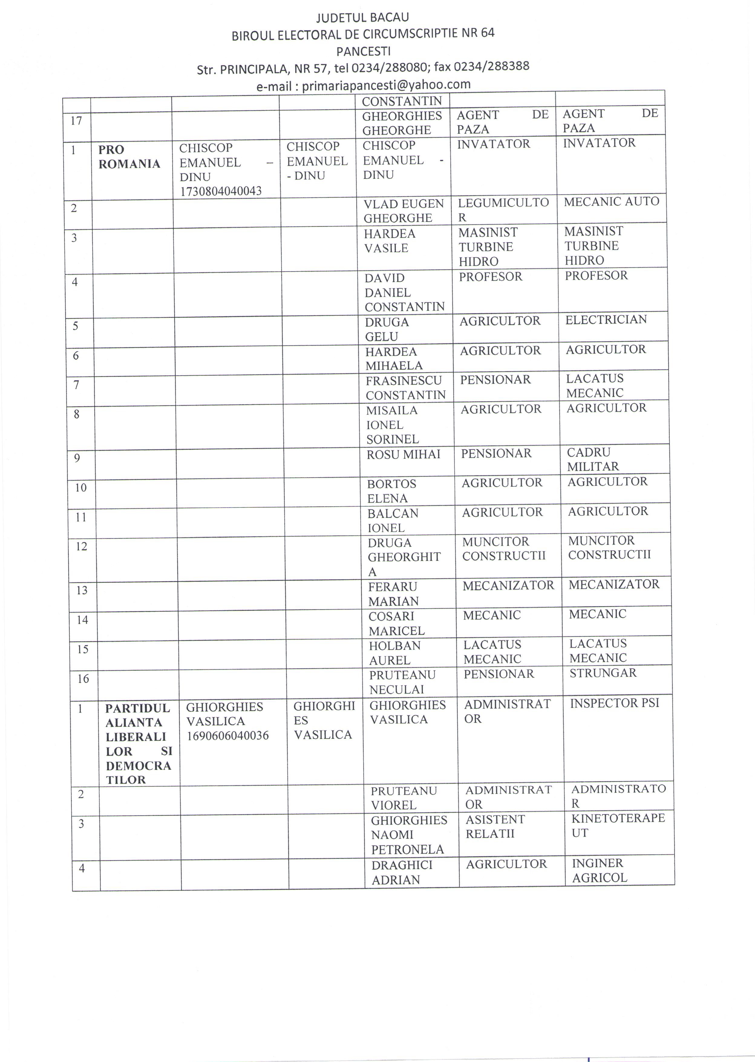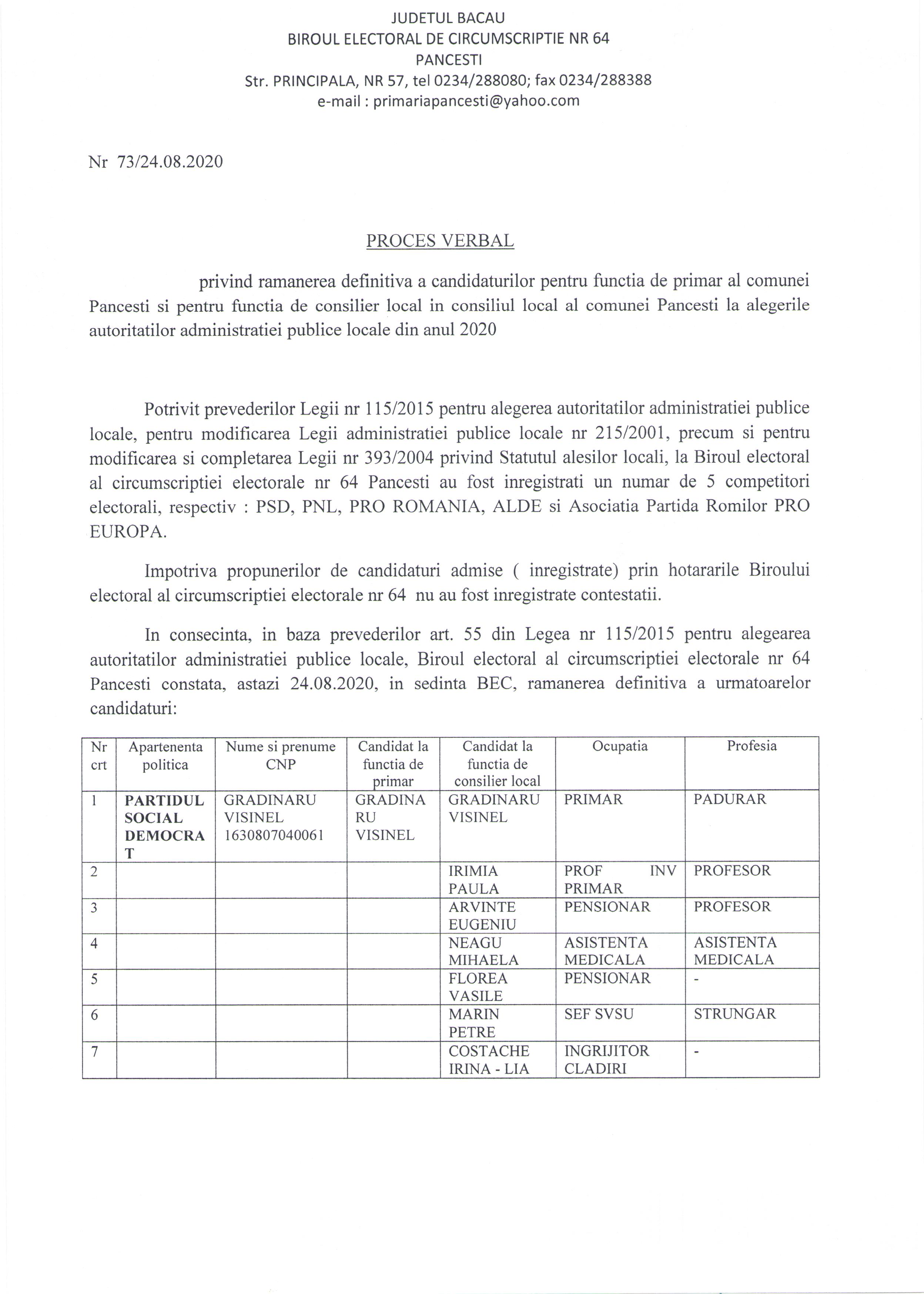 Privind ramanerea definitiva a candidaturilor pentru functia de primar al comunei Pancesti si pentru functia de consilier local in consiliul local al comunei Pancesti la alegerile autoritatilor administratiei publice locale din anul 2020