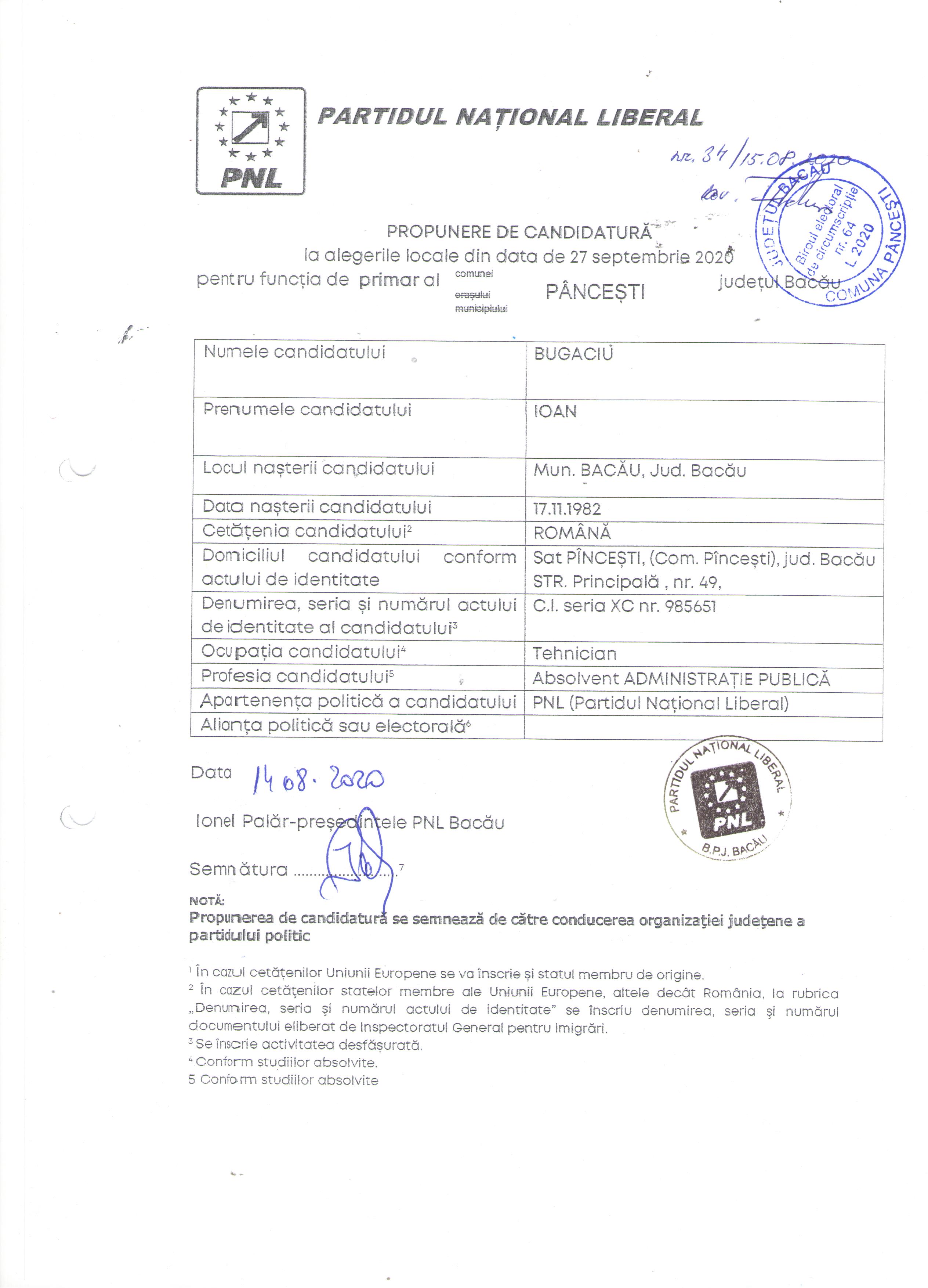 Propunere candidatura pentru functia de primar- PNL