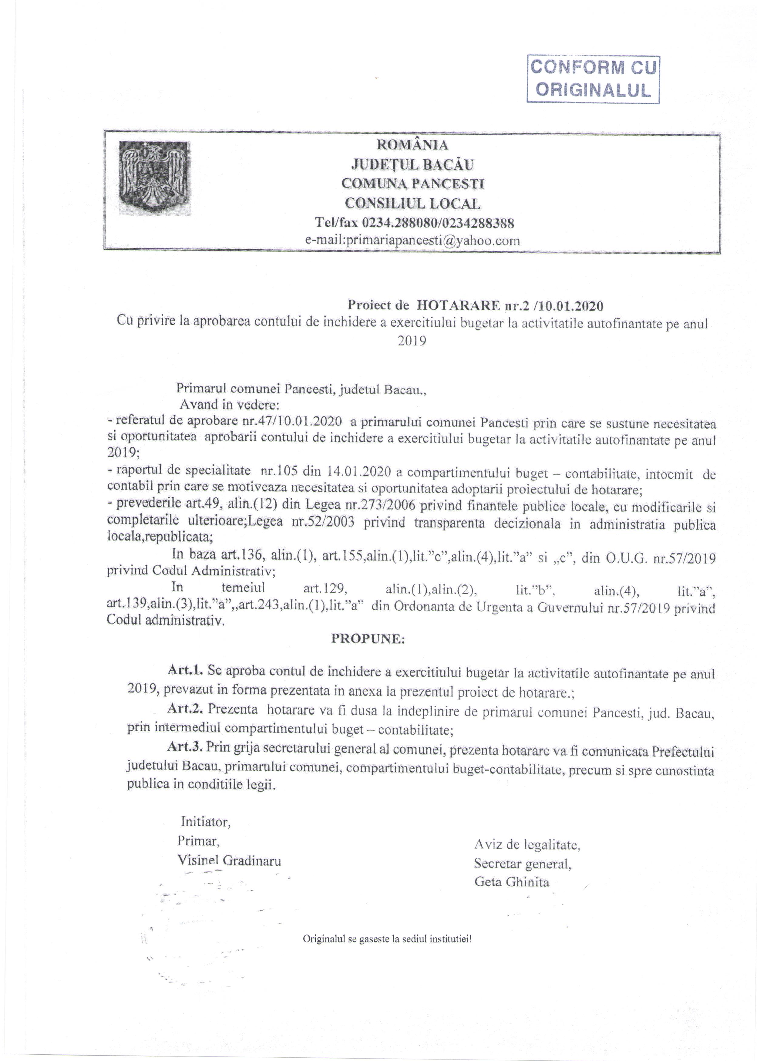 Proiect de Hotarare nr 2