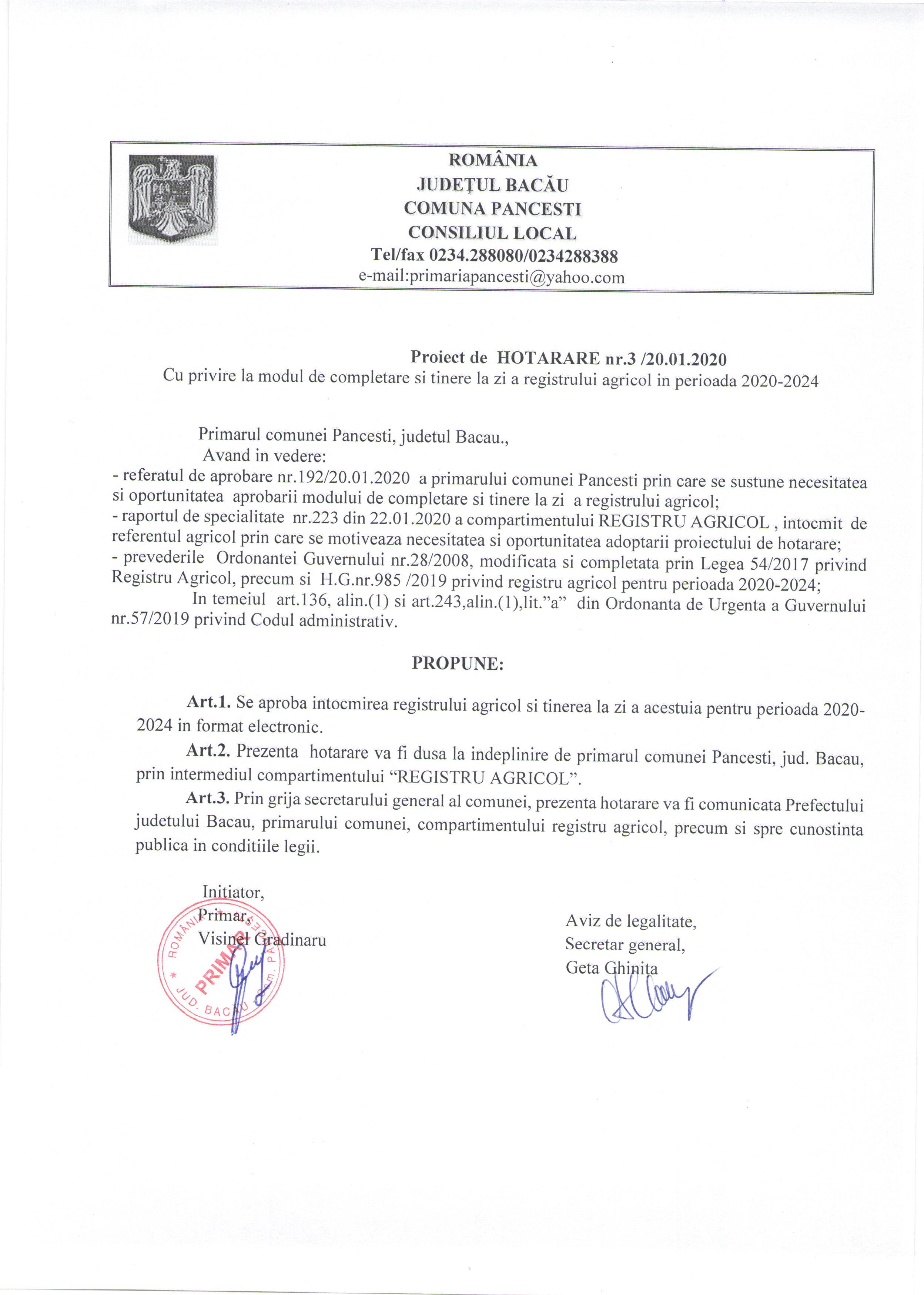 Proiect de Hotarare nr 3