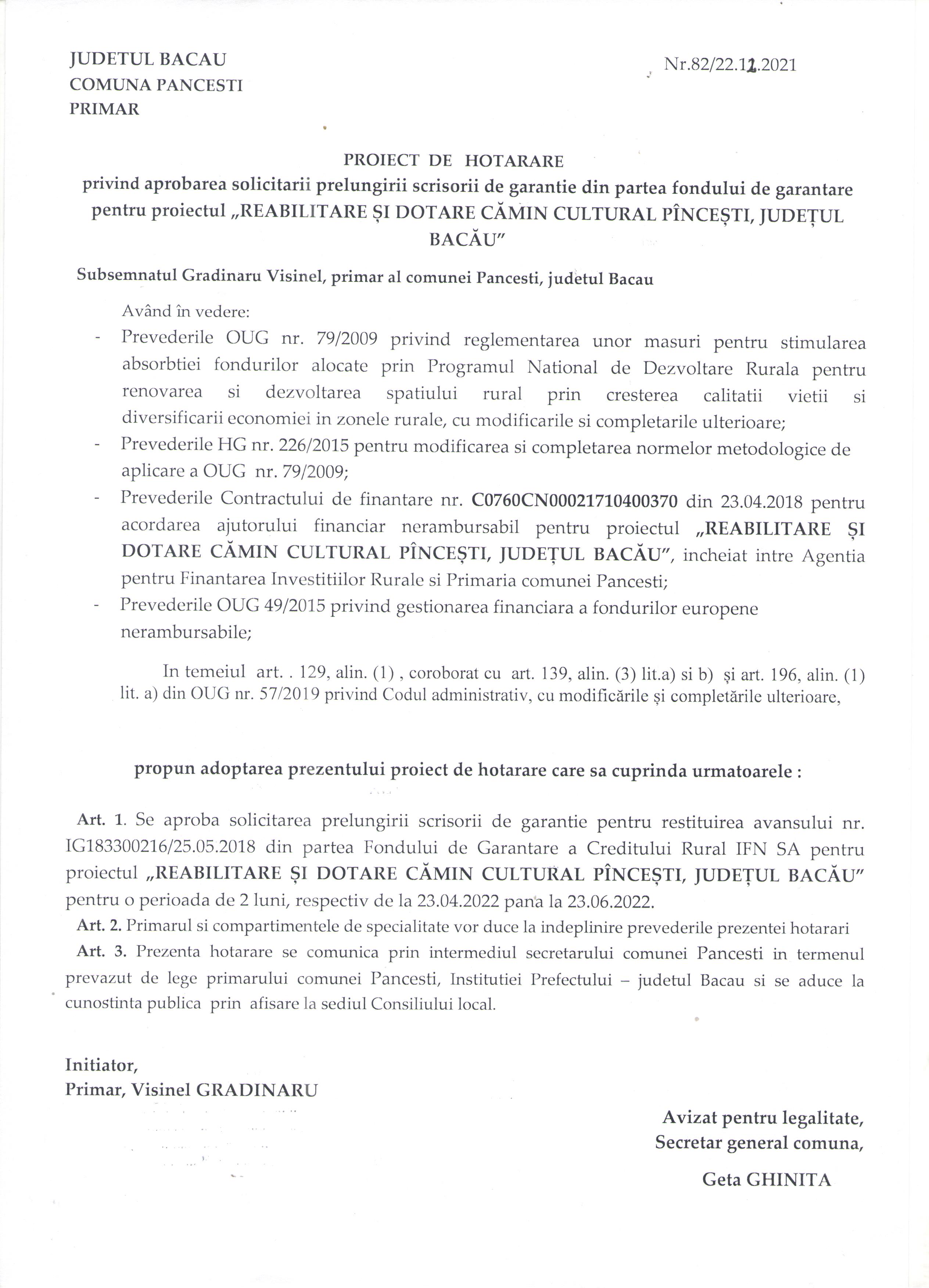 Proiect de hotarare nr 82